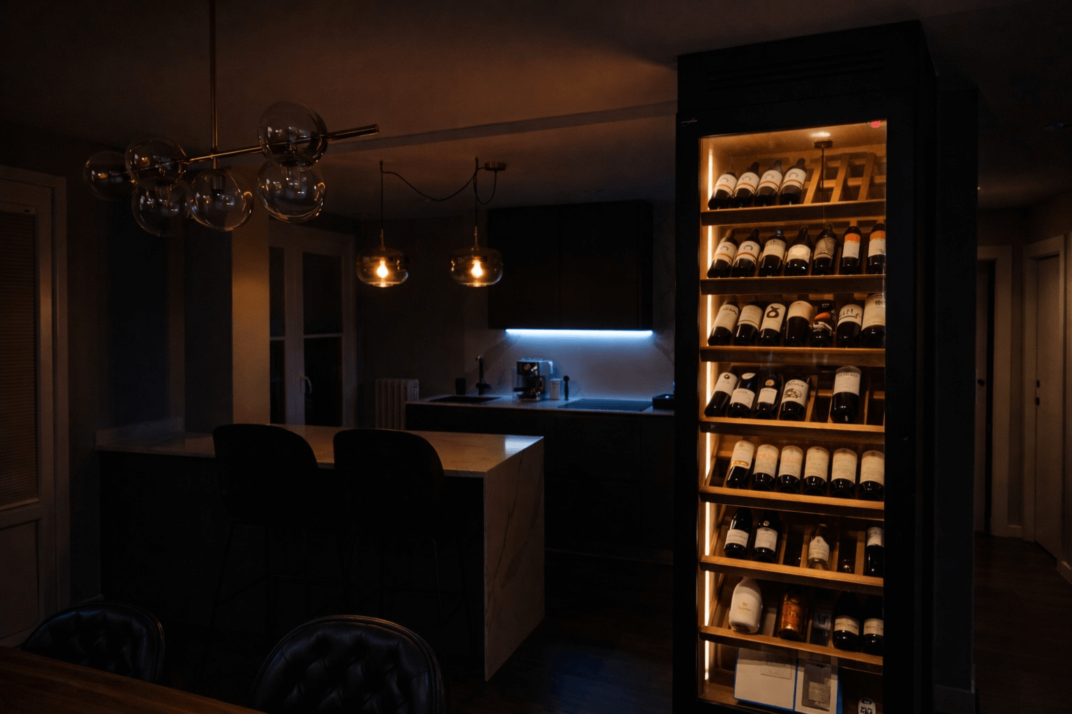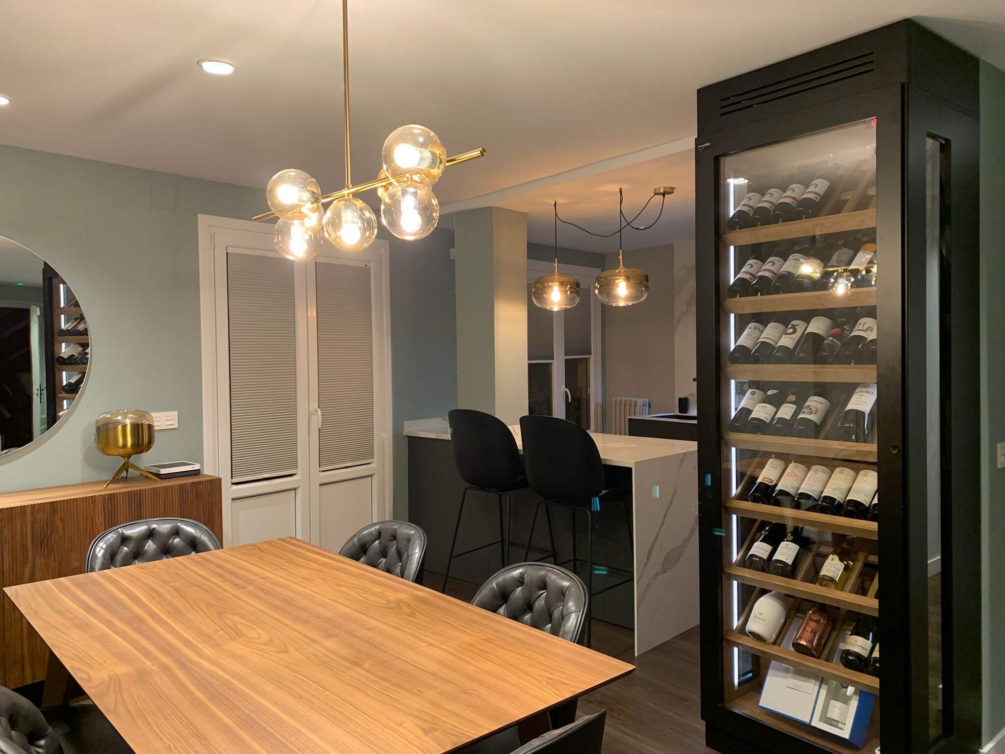 El resultado es una Vinoteca a Medida Burgos completamente integrada en el mobiliario, que divide espacios sin cerrarlos, aporta transparencia visual y añade un alto impacto estético. Es funcional, elegante y perfectamente alineada con un estilo contemporáneo.