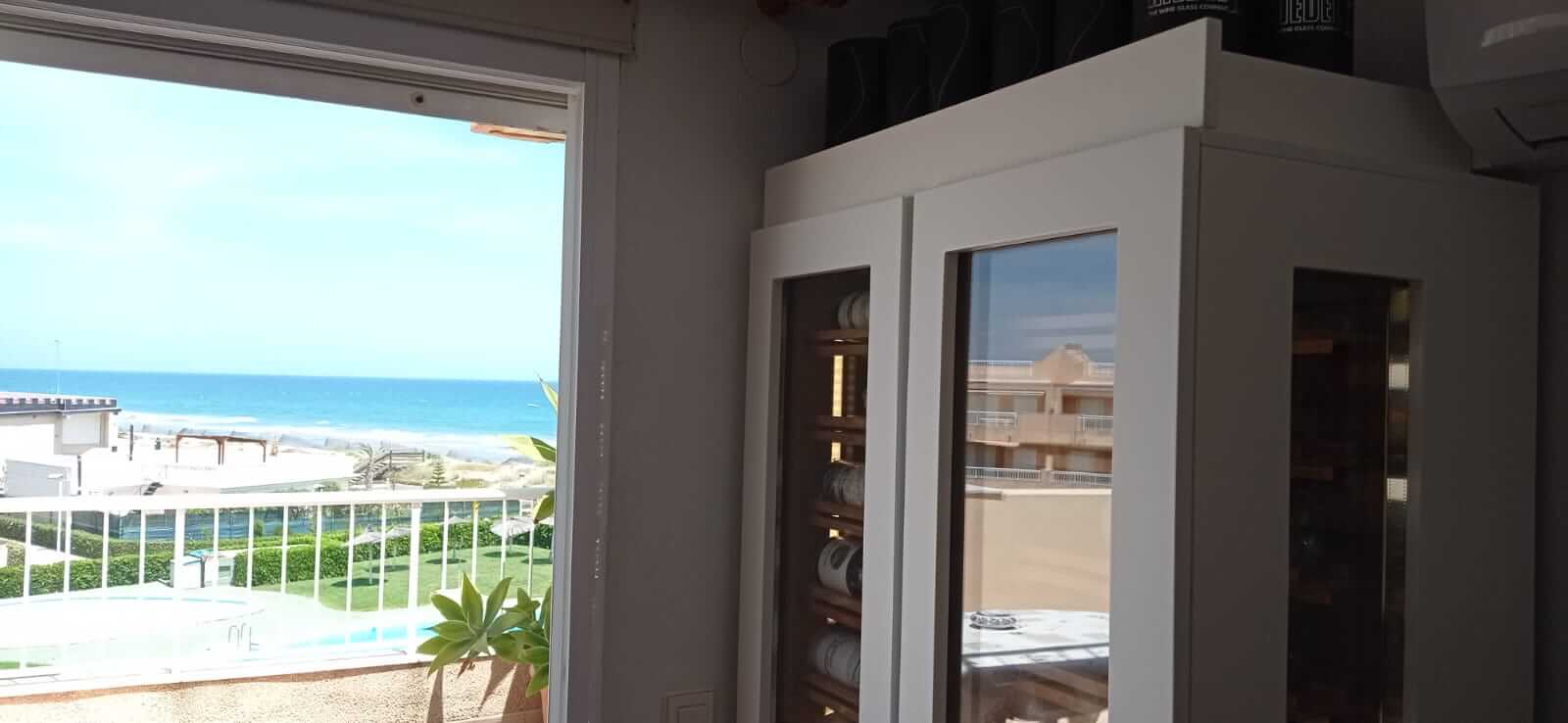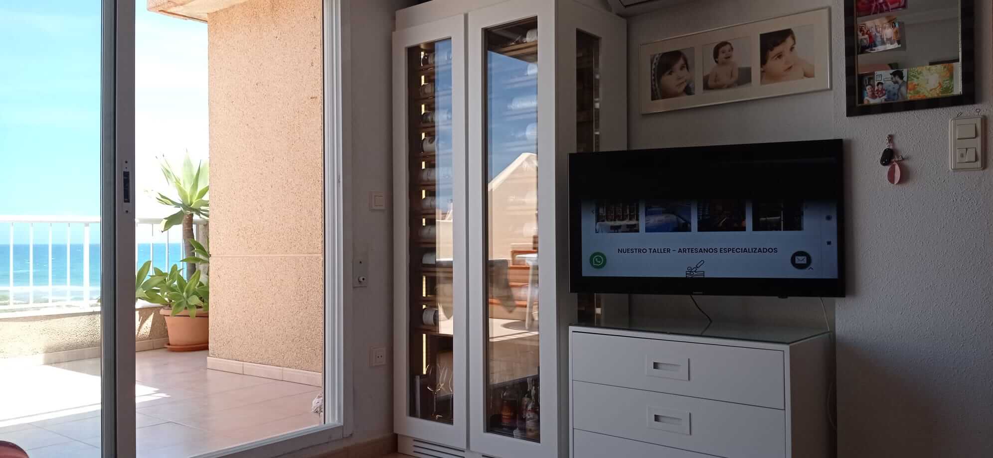 Más allá de su función técnica, esta Vinoteca a medida en Cullera se integra en el salón de la vivienda como un mueble de diseño. Al estar lacada en blanco, combina a la perfección con los tonos neutros del espacio y con la luminosidad natural que entra a raudales por los ventanales abiertos al mar.