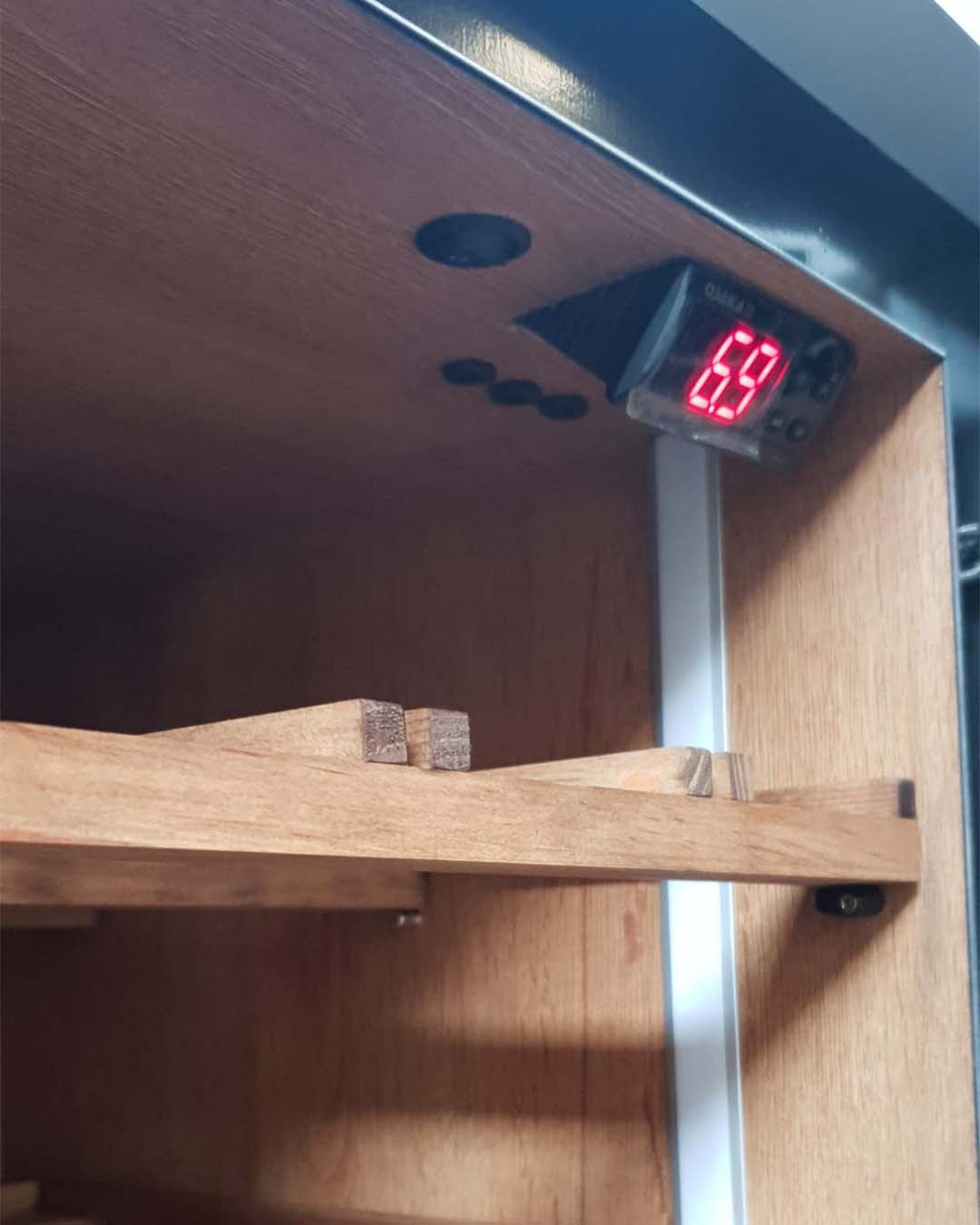 - Iluminación: Tiras leds de luz blanca cálida en ambos laterales de su interior.