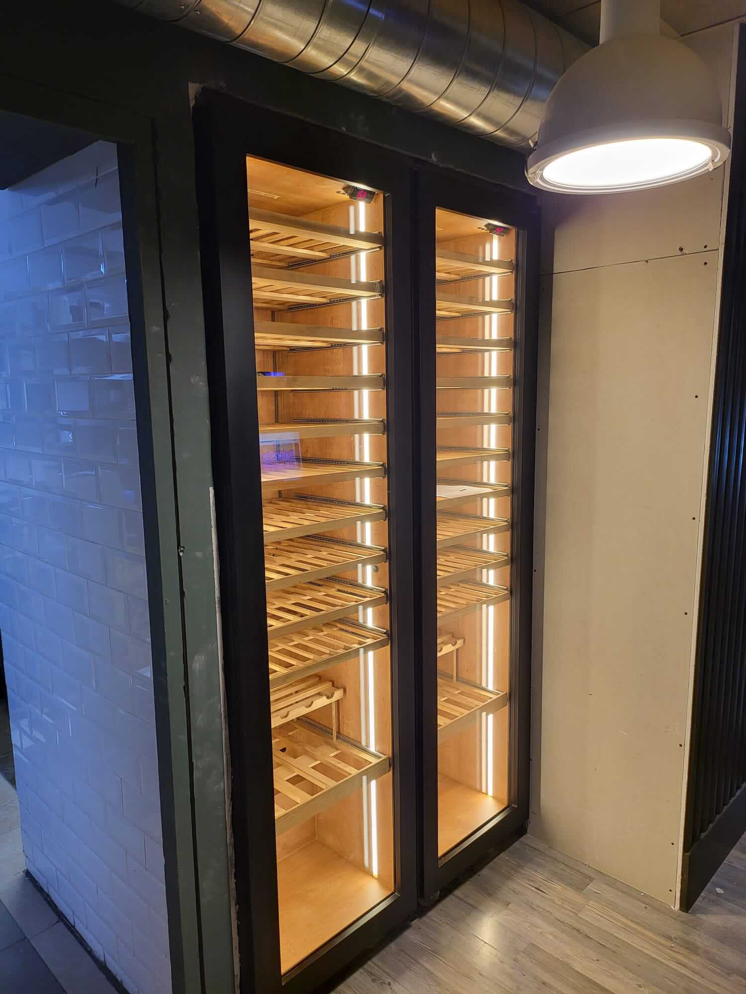 Capacidad: unas 116 botellas estándar, en cada vinoteca.