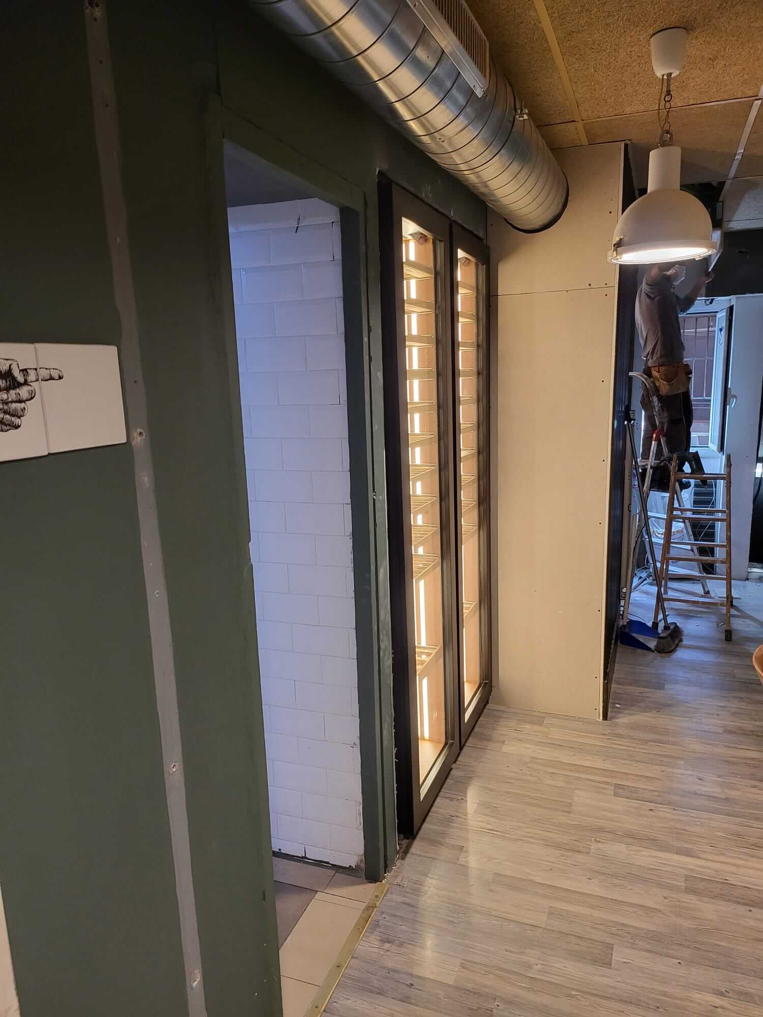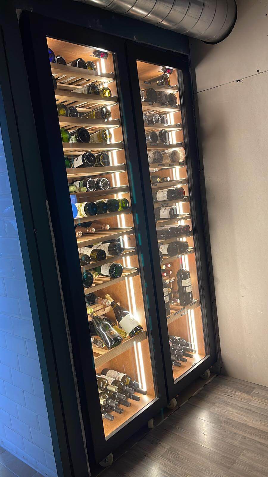 Por tanto, fabricamos en espacio destinado para la nueva Vinoteca una nueva Vinoteca a medida armariada refrigerada para vinos tanto tintos como blancos, con retroiluminación interior.