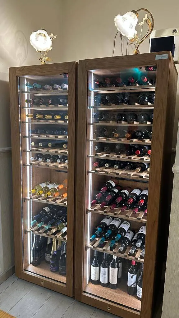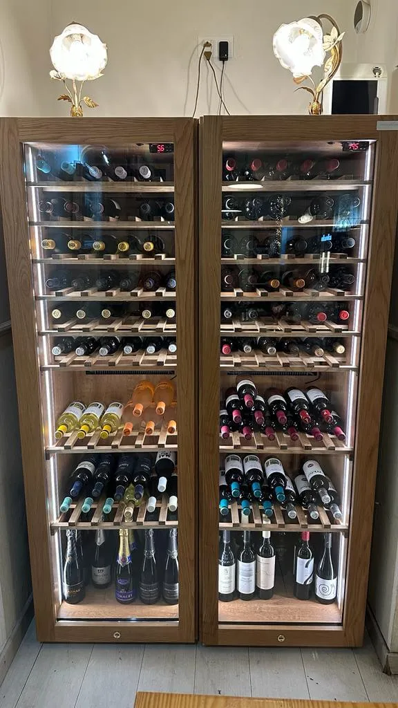 Vinoteca a medida de servicio directo al cliente a doble temperatura.