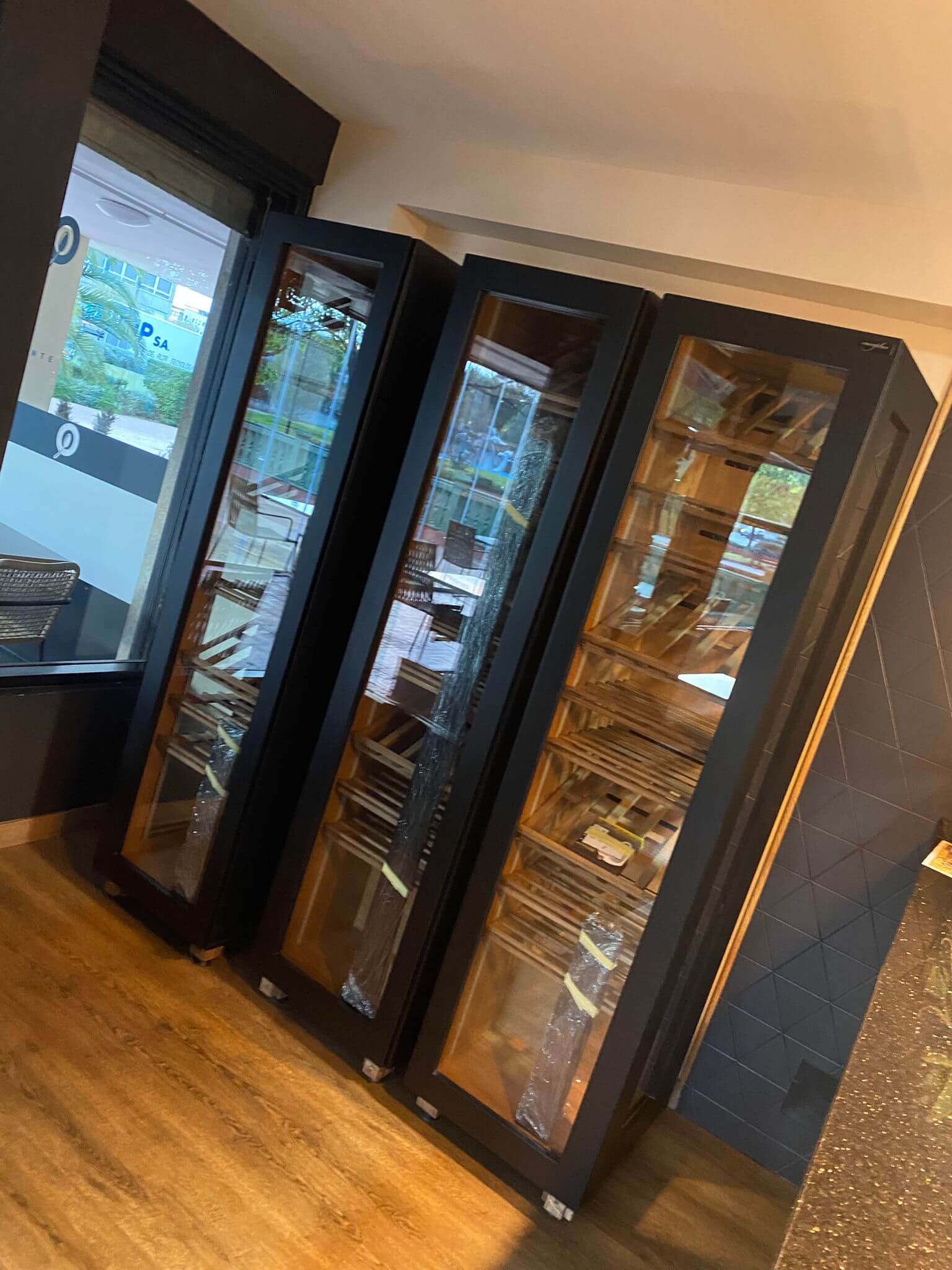 El resultado es una pieza funcional y estética, que transmite equilibrio, precisión y respeto por el vino. Su sistema de refrigeración independiente en cada cuerpo permite conservar tintos, blancos y espumosos a su temperatura ideal, manteniendo la calidad del producto y facilitando el trabajo del personal en servicio.