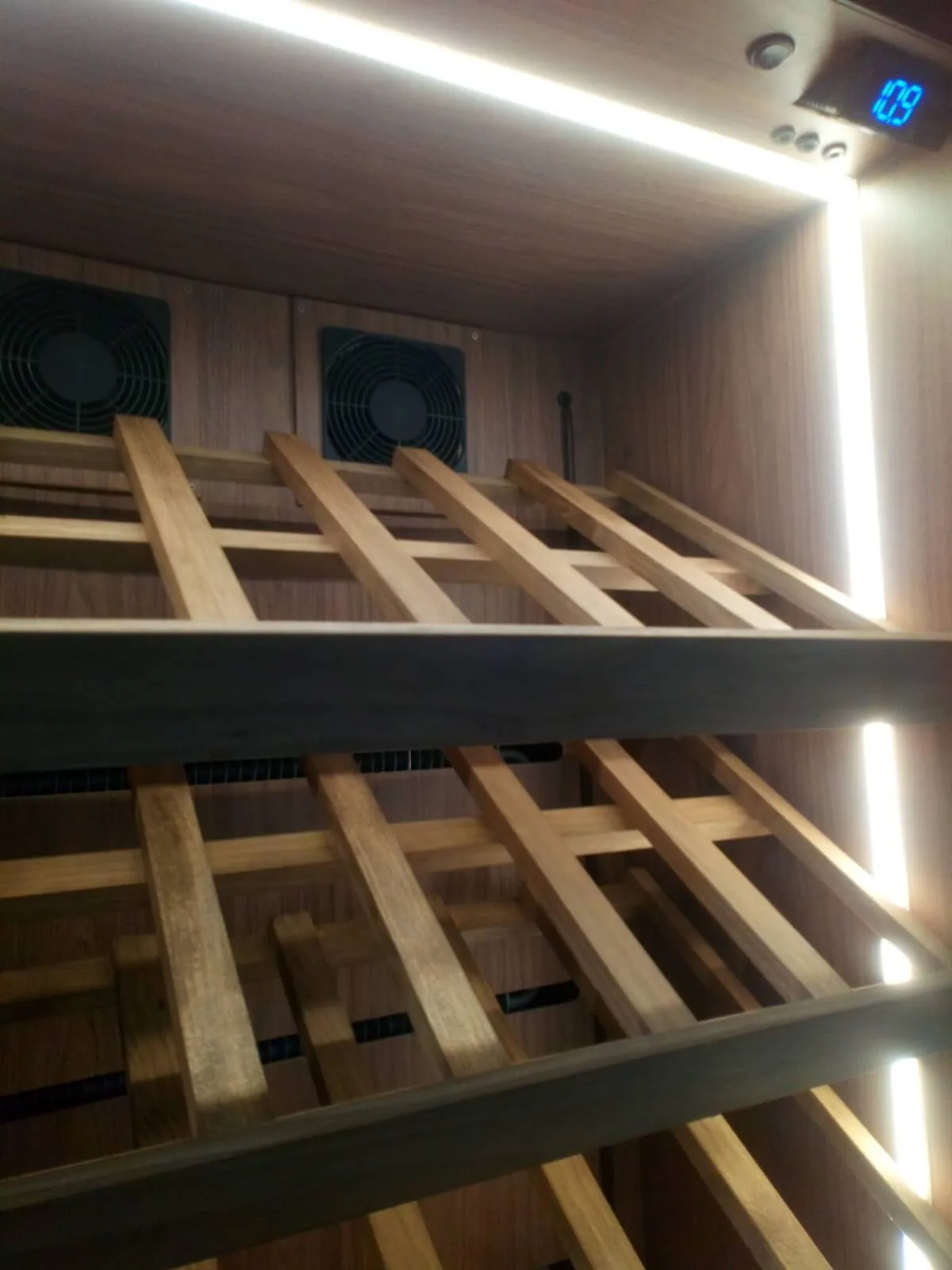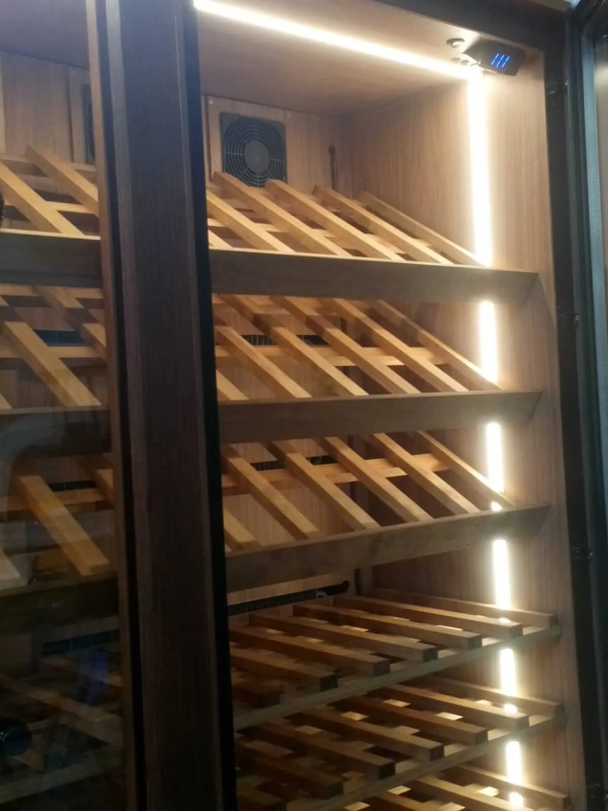Capacidad total: 208 botellas (180 tumbadas + 28 de pie)