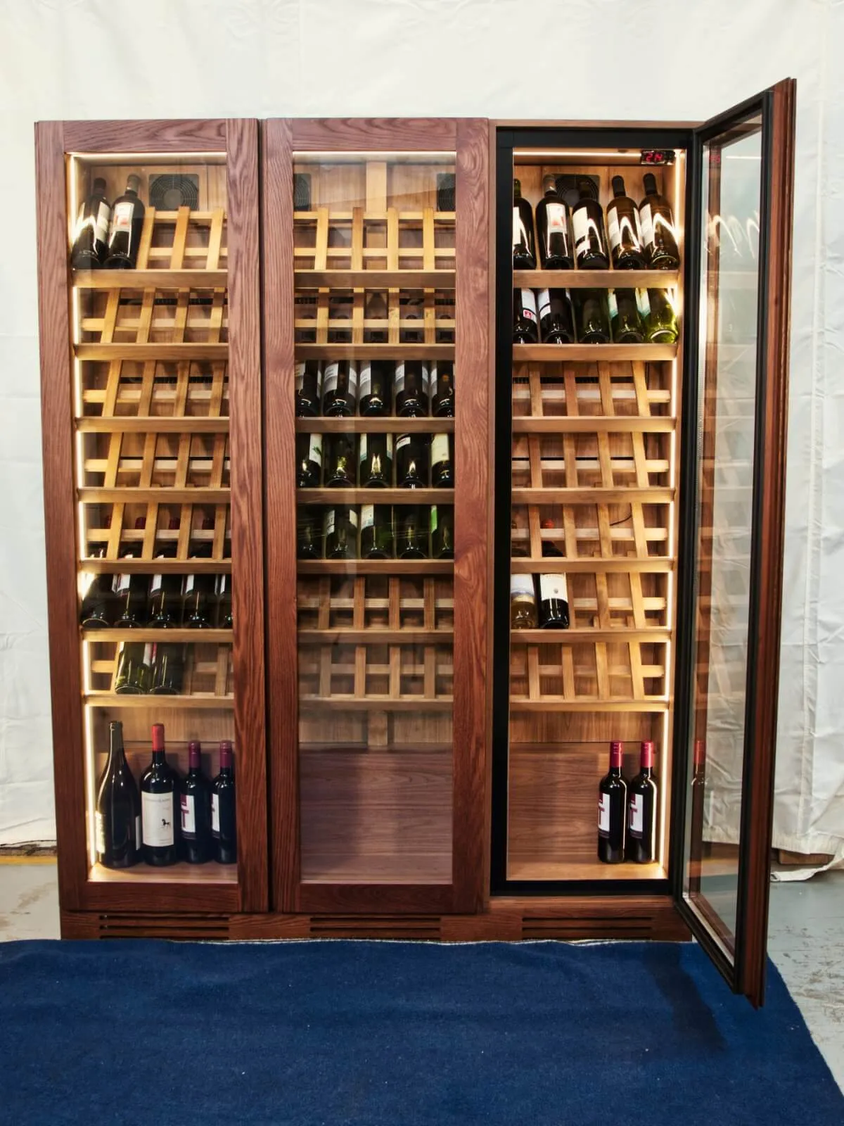 Capacidad total: 130 botellas (102 en exposición + 28 adicionales)