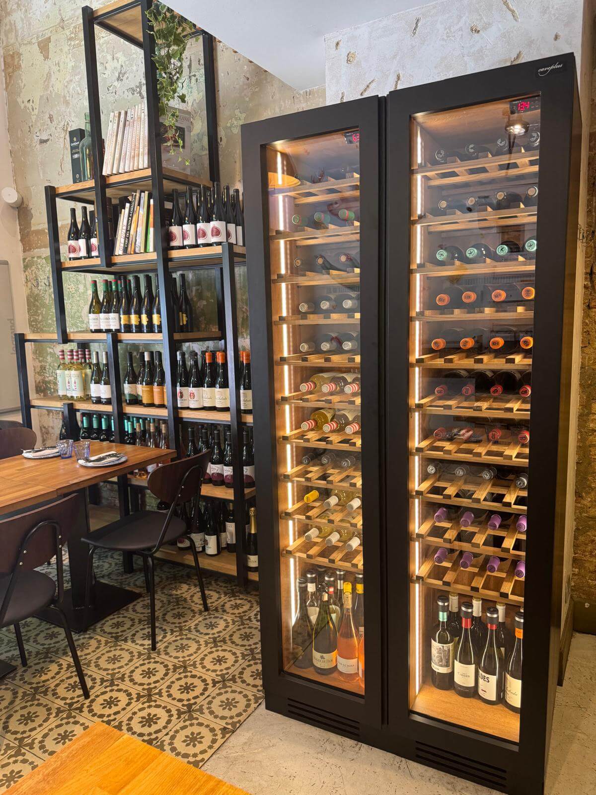 La Vinoteca de doble temperatura del Restaurante La Bendita en Barcelona es un ejemplo de cómo la tecnología aplicada al vino puede transformar la experiencia gastronómica. Con su diseño en negro, retroiluminación cálida regulable, capacidad optimizada y control térmico preciso, este equipamiento se convierte en un aliado indispensable para el servicio y en un atractivo adicional para los clientes que buscan vivir una experiencia completa a pocos metros de la Sagrada Familia.
