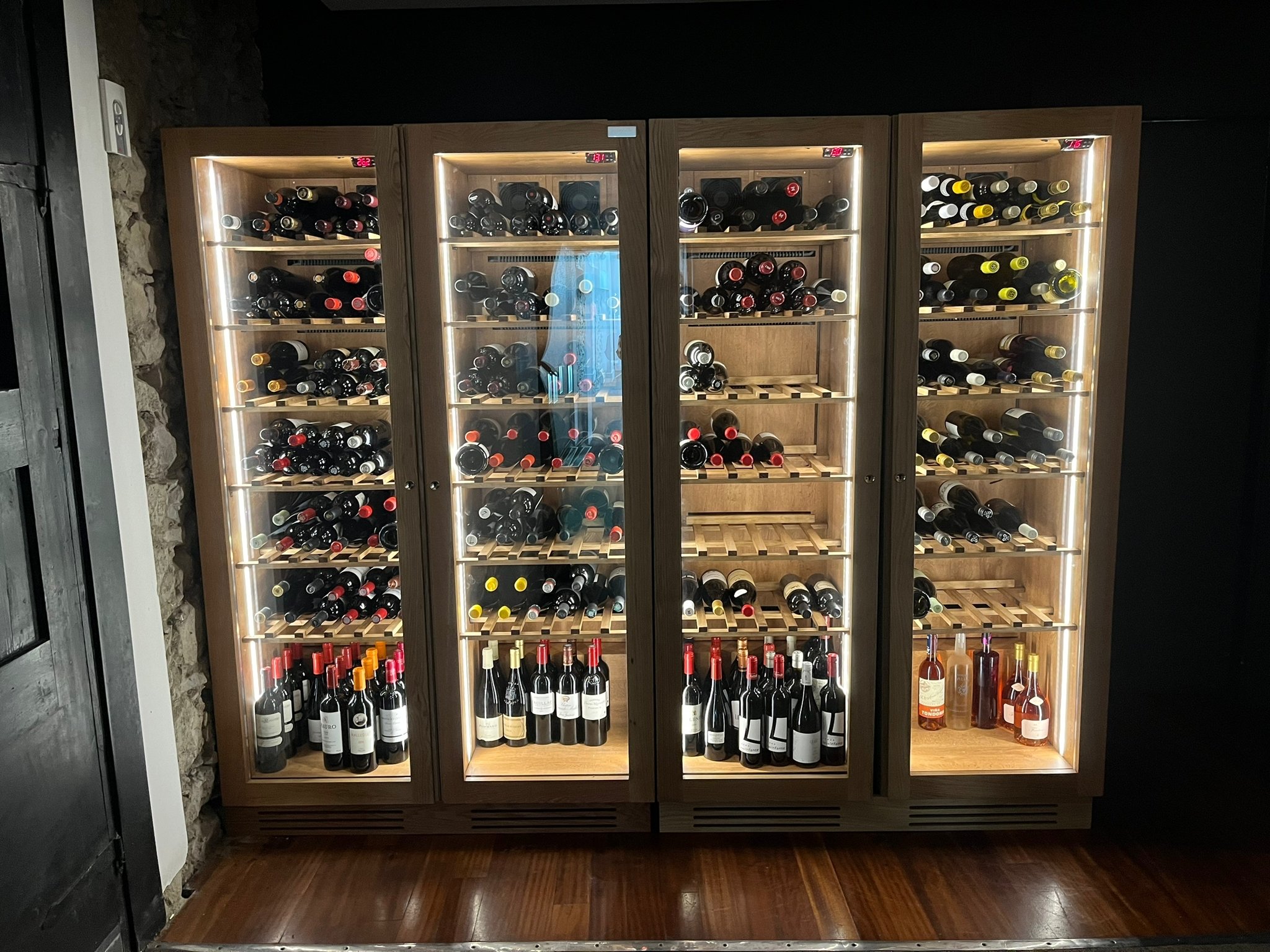 Cada detalle ha sido tratado con excelencia artesanal: desde los marcos, los mecanizados de las bandejas, hasta la ventilación discreta y silenciosa necesaria en un entorno gastronómico de alto nivel. El resultado es una bodega de exposición y conservación profesional integrada con elegancia en un restaurante estrella, diseñada para realzar la experiencia del vino y reforzar el carácter del local.