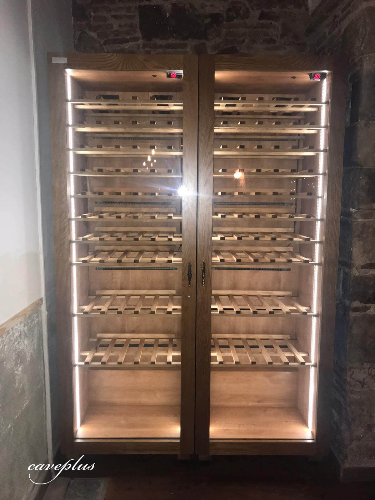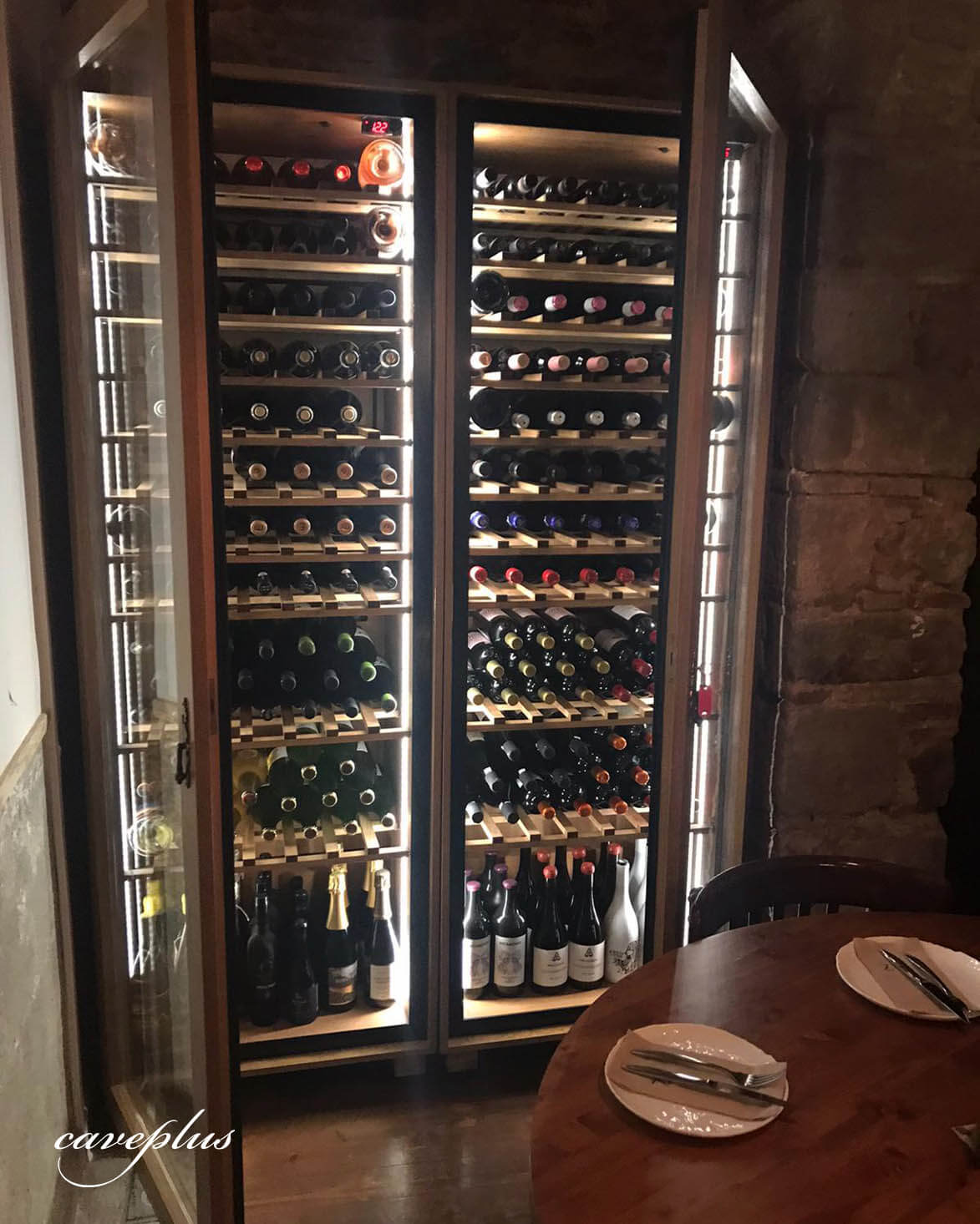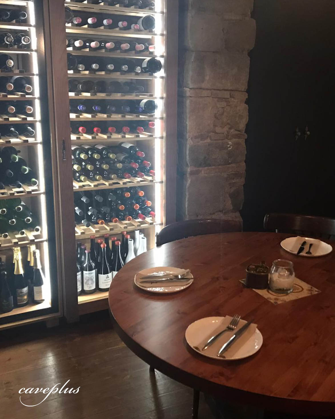 El proyecto que presentamos combina diseño, tecnología y funcionalidad en un solo elemento. Esta Vinoteca a Medida Rte Zyriab de Barcelona se integra de manera impecable con la decoración del restaurante: materiales nobles, un acabado barnizado que realza la madera y un estilo atemporal que respeta la autenticidad del espacio. Cada detalle está pensado para armonizar con la piedra vista y la calidez del mobiliario, logrando que la vinoteca no sea un añadido, sino parte esencial del ambiente.