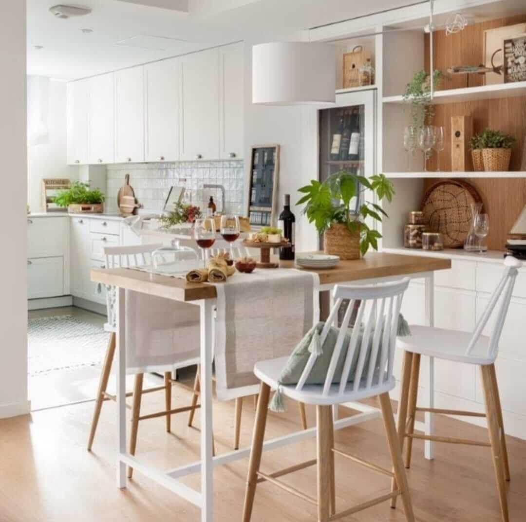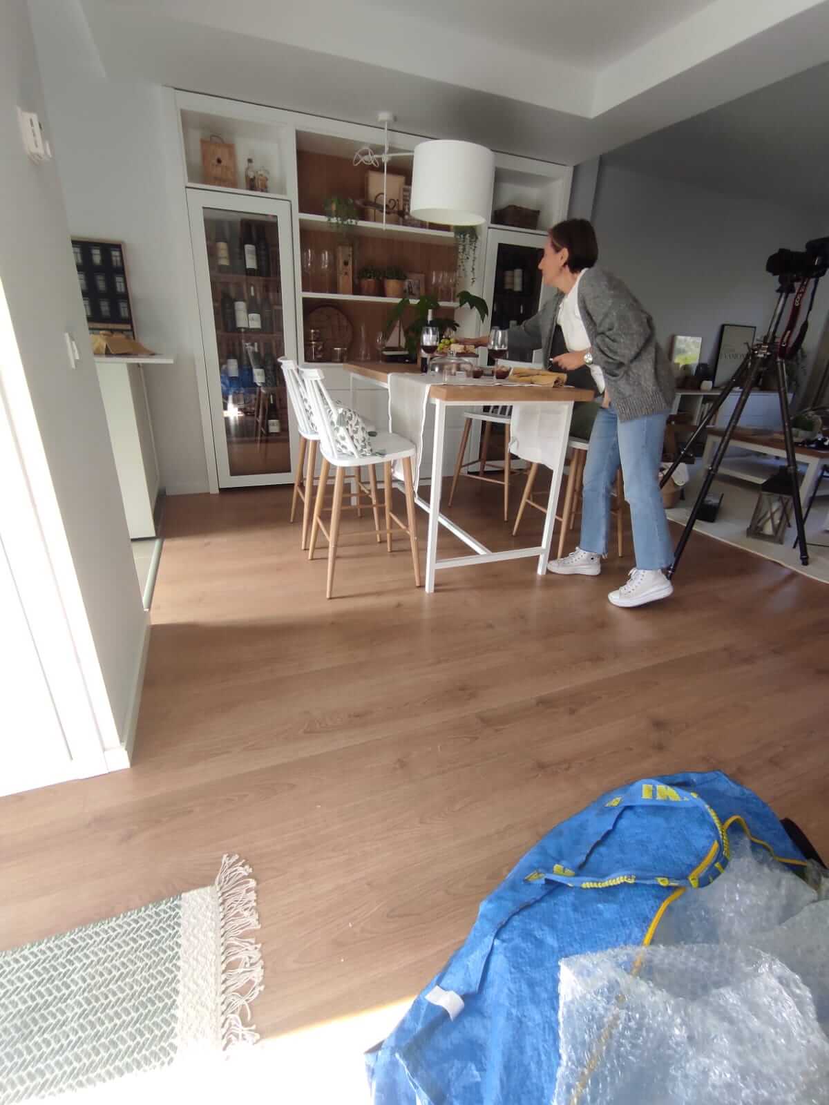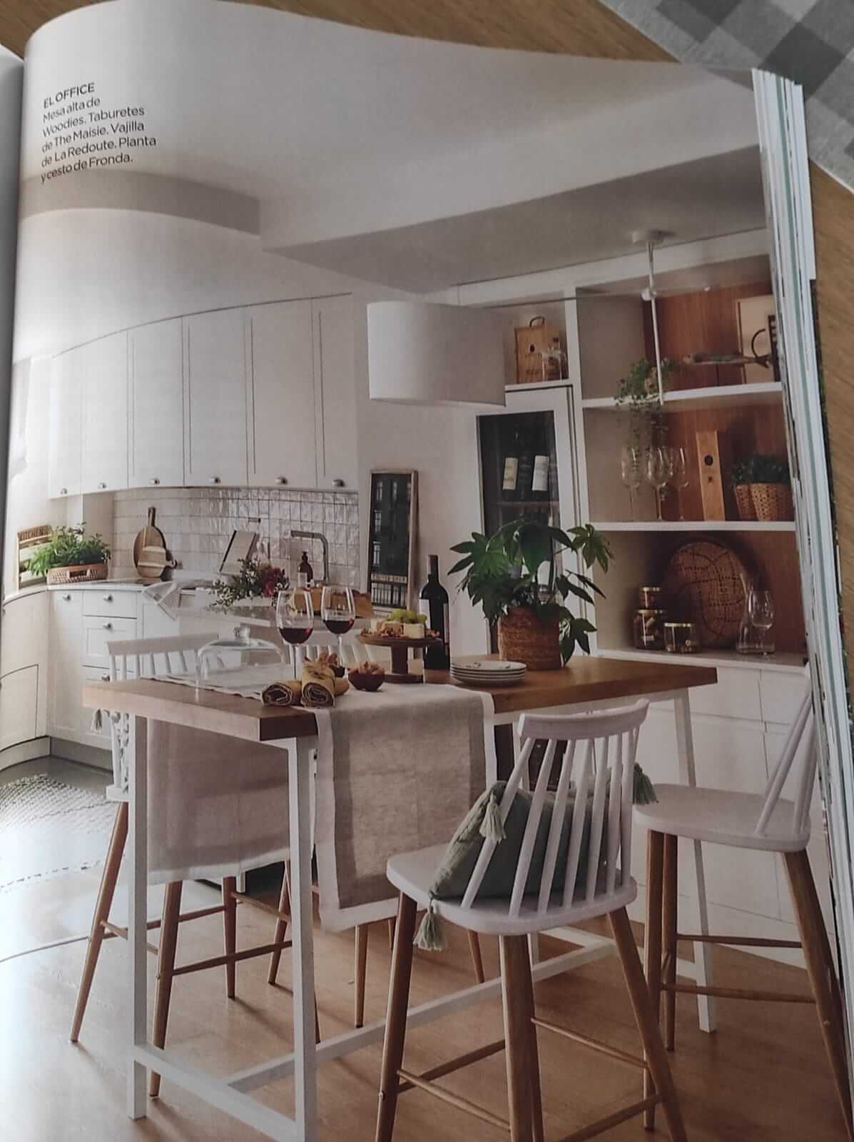 Ambas vinotecas están fabricadas en madera interior en color roble, combinada con un exterior lacado en blanco mate que se mimetiza con el resto del mobiliario de cocina y salón. Este equilibrio entre tonos claros y cálidos genera una sensación de continuidad visual y amplitud, convirtiendo la vinoteca en parte del mobiliario cotidiano del hogar.